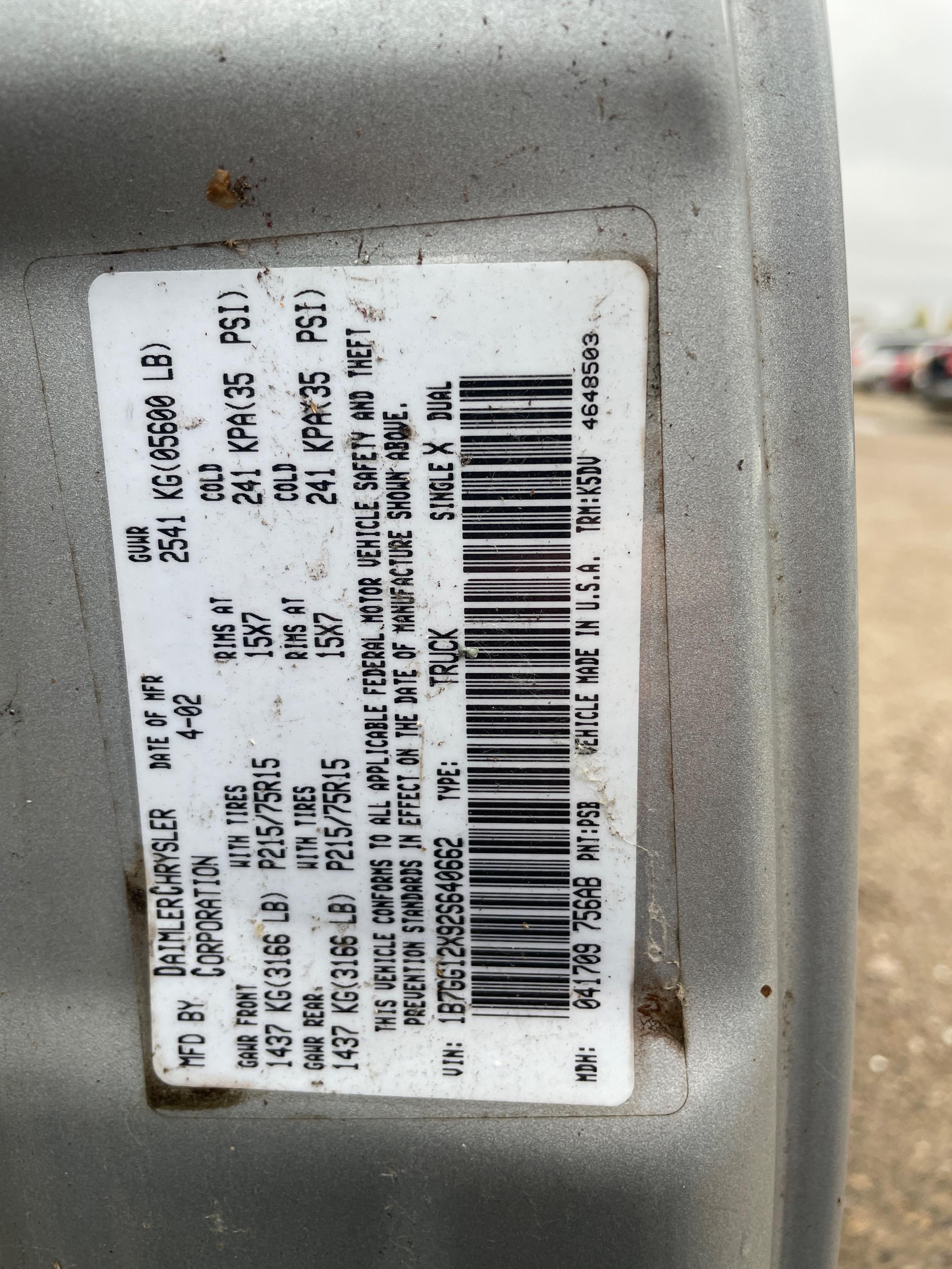 VIN | 1B7GG12X92S640662 |