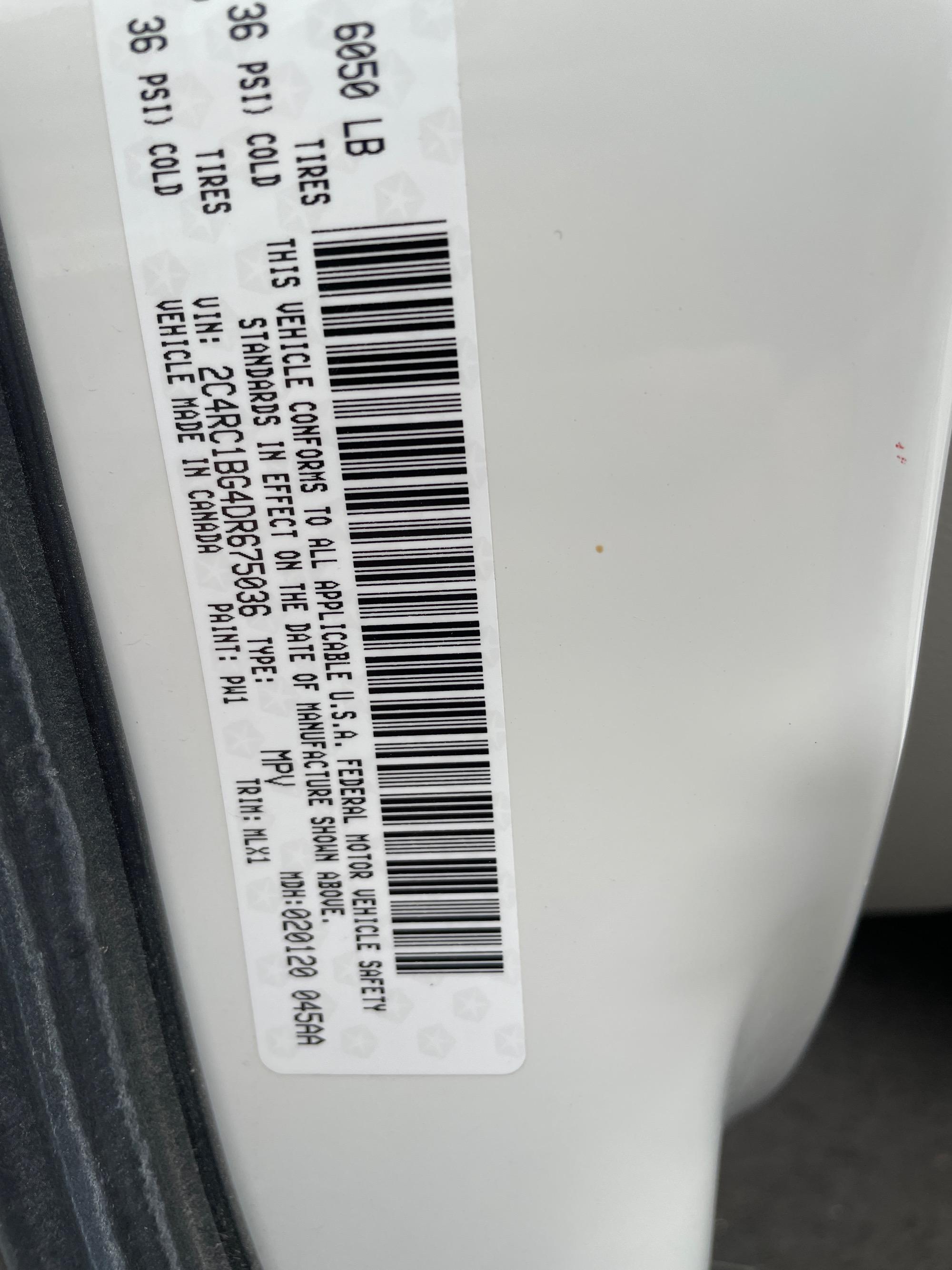 VIN | 2C4RC1BG4DR675036 |